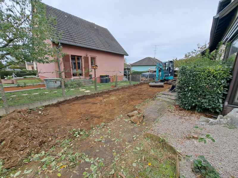 Terrassement : Creusement, nivellement, remblaiement et préparation des sols pour vos chantiers de construction ou d’aménagement.